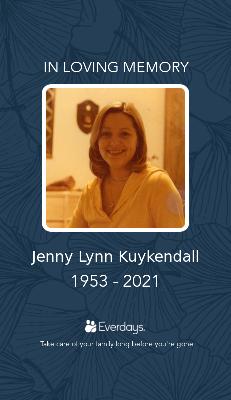 Obituary for Jenny Lynn Kuykendall: Jenny Lynn Kuykendall was born in Waco, TX on September 13, 1953 to Robert and Norma Emerson. She married her high school sweetheart, Sid Kuykendall,and they were happily married for 46 years.Lynn’s involvement in FHA led her to become a national officer in high school. She was also a majorette for her entire high school career, graduating from Midlothian High School in 1971.Upon graduating from high school Lynn continued to pursue her passions by earning a degree in Home Economics from Baylor University. She then returned to her hometown to teach in MISD for over 20 years.Lynn not only loved educating children, but being a loving, supportive mother to her own children. Attending all sporting events, activities and cattle shows to be sure their coach and Dad wasn’t being too hard on her babies.Another joy in her life was being a proud Nana to her amazing grandkids. Her love and admiration for each of them is a memory they will always cherish.Lynn is survived by husband Sid; her children; Tracey McCellon and spouse Kevin, John Kuykendall and spouse Jamie, Nicole Lowe and spouse Aaron, Cody Kuykendall and spouse Page; grandchildren, Kirstie and Preston McCellon, Camryn and Logan Ray, Sidney Kuykendall, Presley and Cordell Lowe, and Emerson and Carson Kuykendall; great grandchildren, Wesley, Jr. and Alice Young; her siblings, Bobby (and wife Keri), Steve (and wife Sherry), numerous in-laws, nieces and nephews. She was preceded in death by her parents, Robert and Norma Emerson; and her son Clint Kuykendall.The Kuykendall family appreciates your love and support during this very difficult time.
